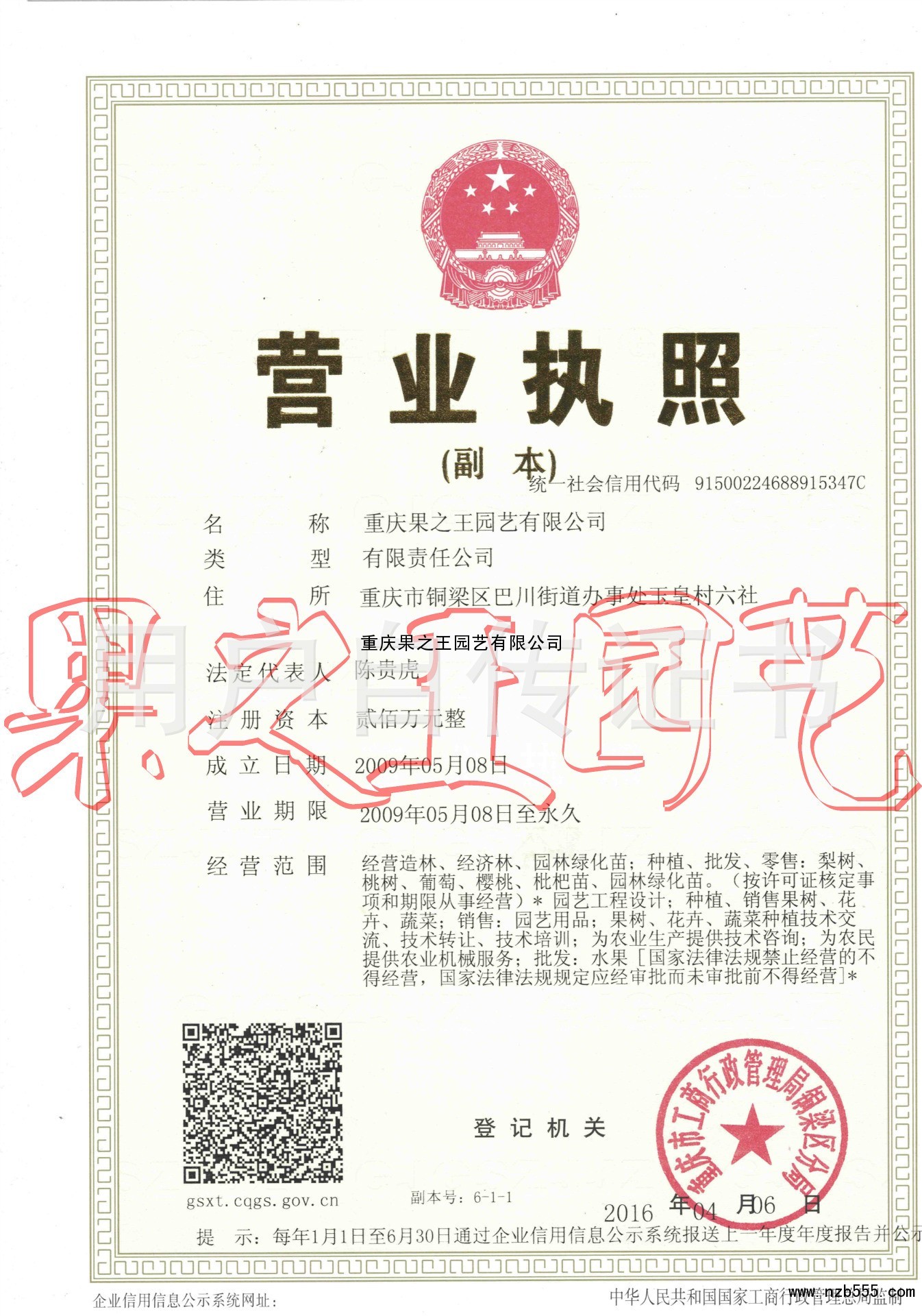 重慶果之王園藝有限公司