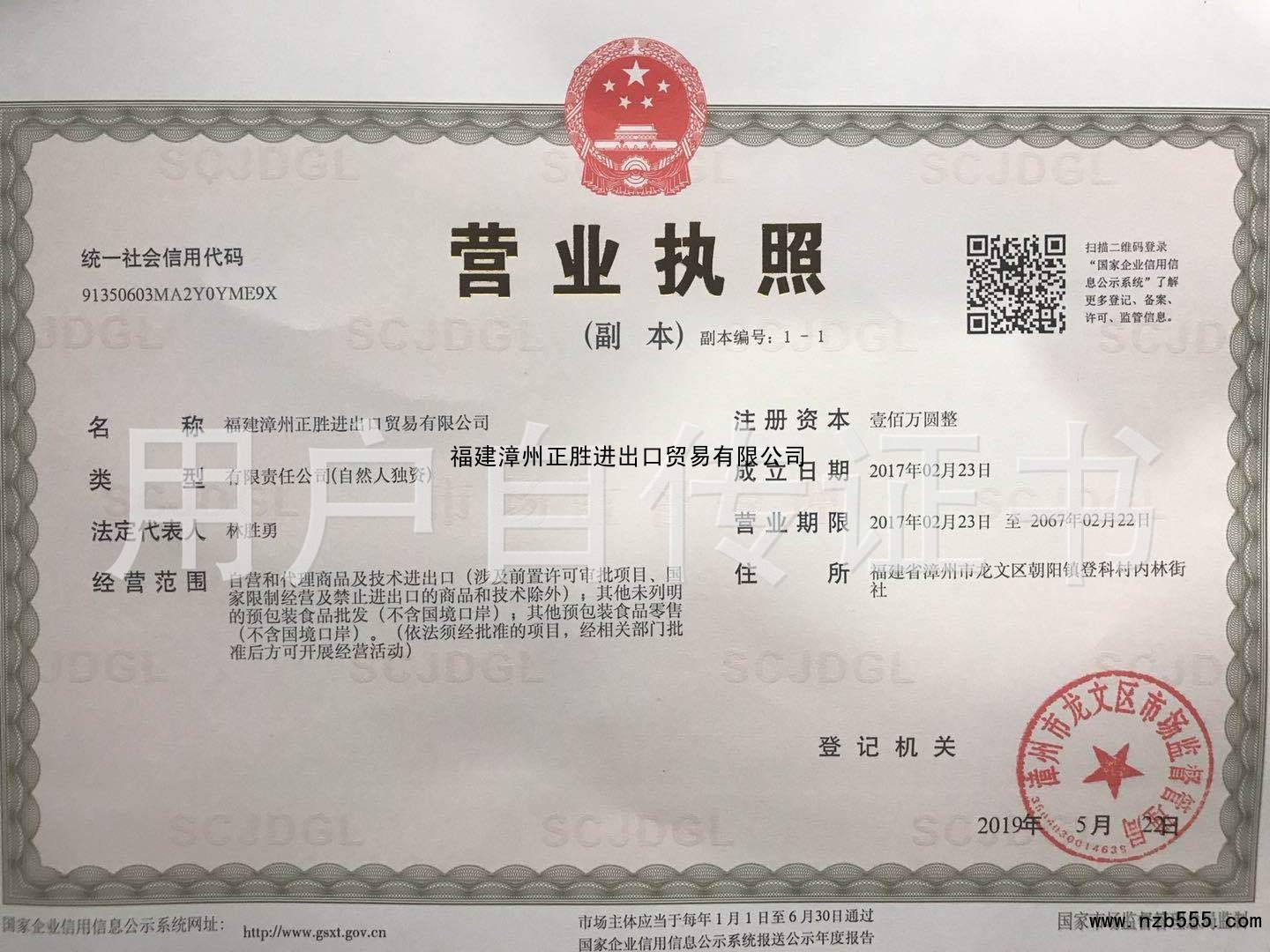 福建漳州正勝進出口貿易有限公司