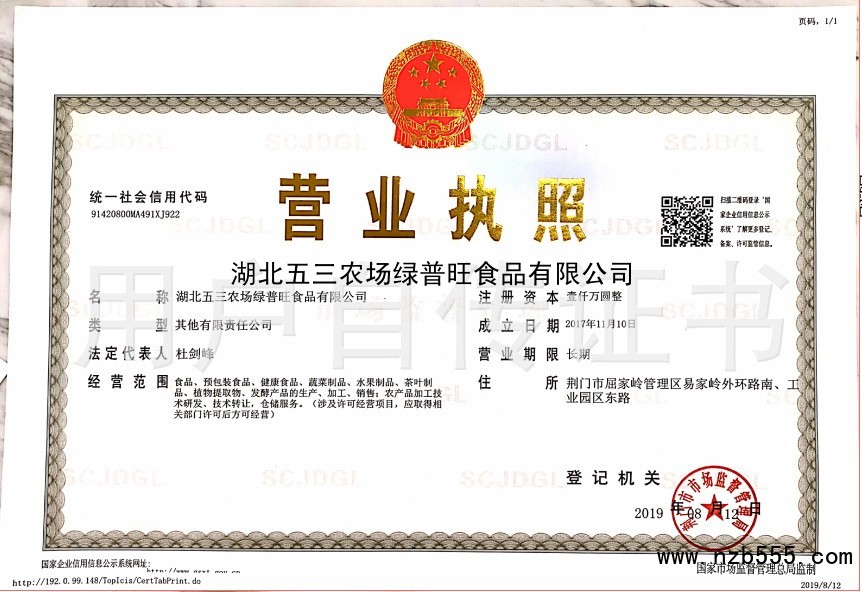 湖北五三農場綠普旺食品有限公司