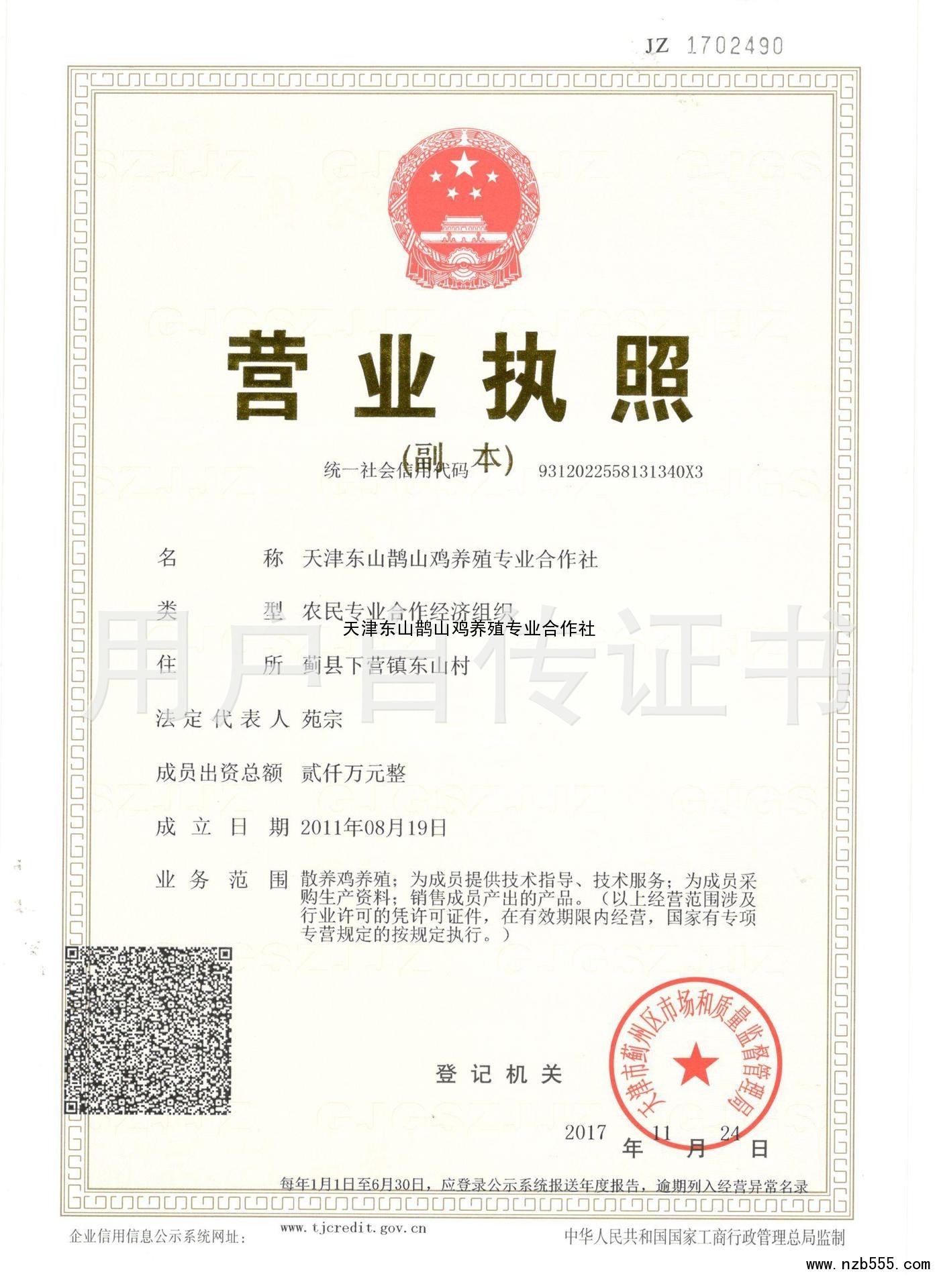 | 發(fā)證機(jī)構(gòu): | 天津市薊州區(qū)市場(chǎng)和質(zhì)量監(jiān)督管理局 | 發(fā)證時(shí)間 : | 2017-11-24 |