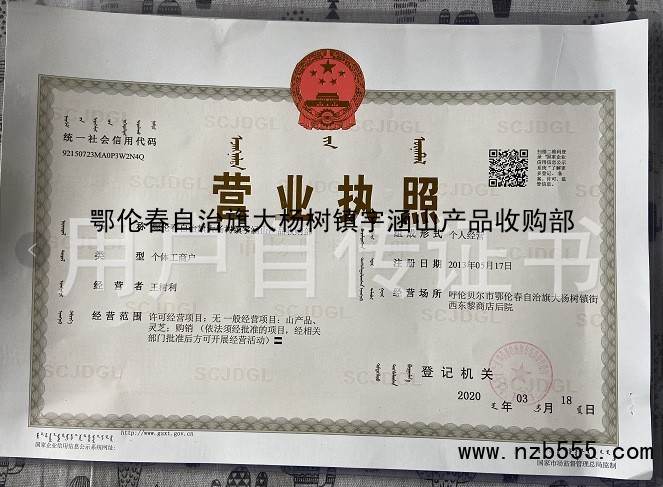 鄂倫春自治旗大楊樹鎮(zhèn)宇涵山產(chǎn)品收購部