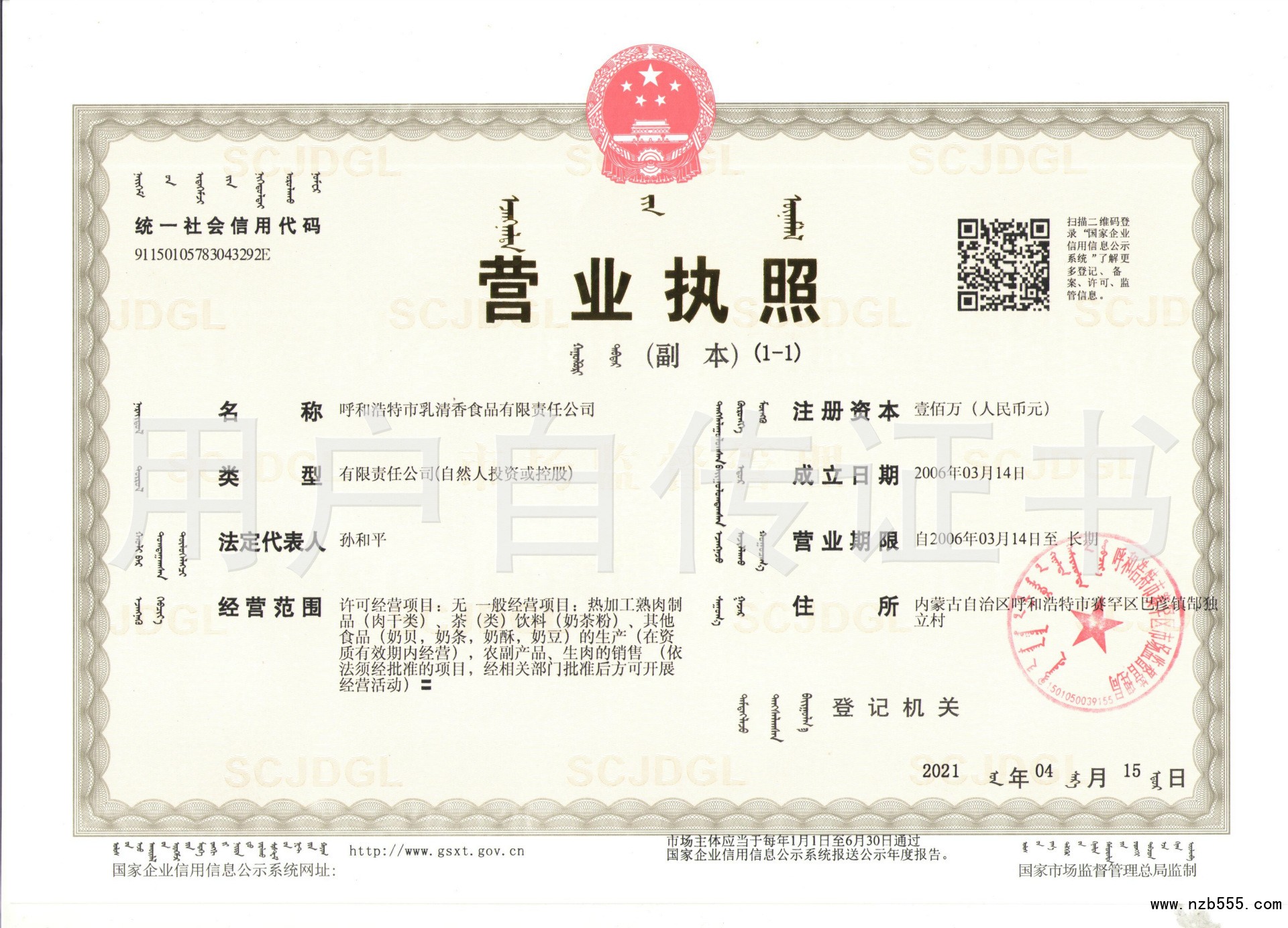 呼和浩特市乳清香食品有限責任公司