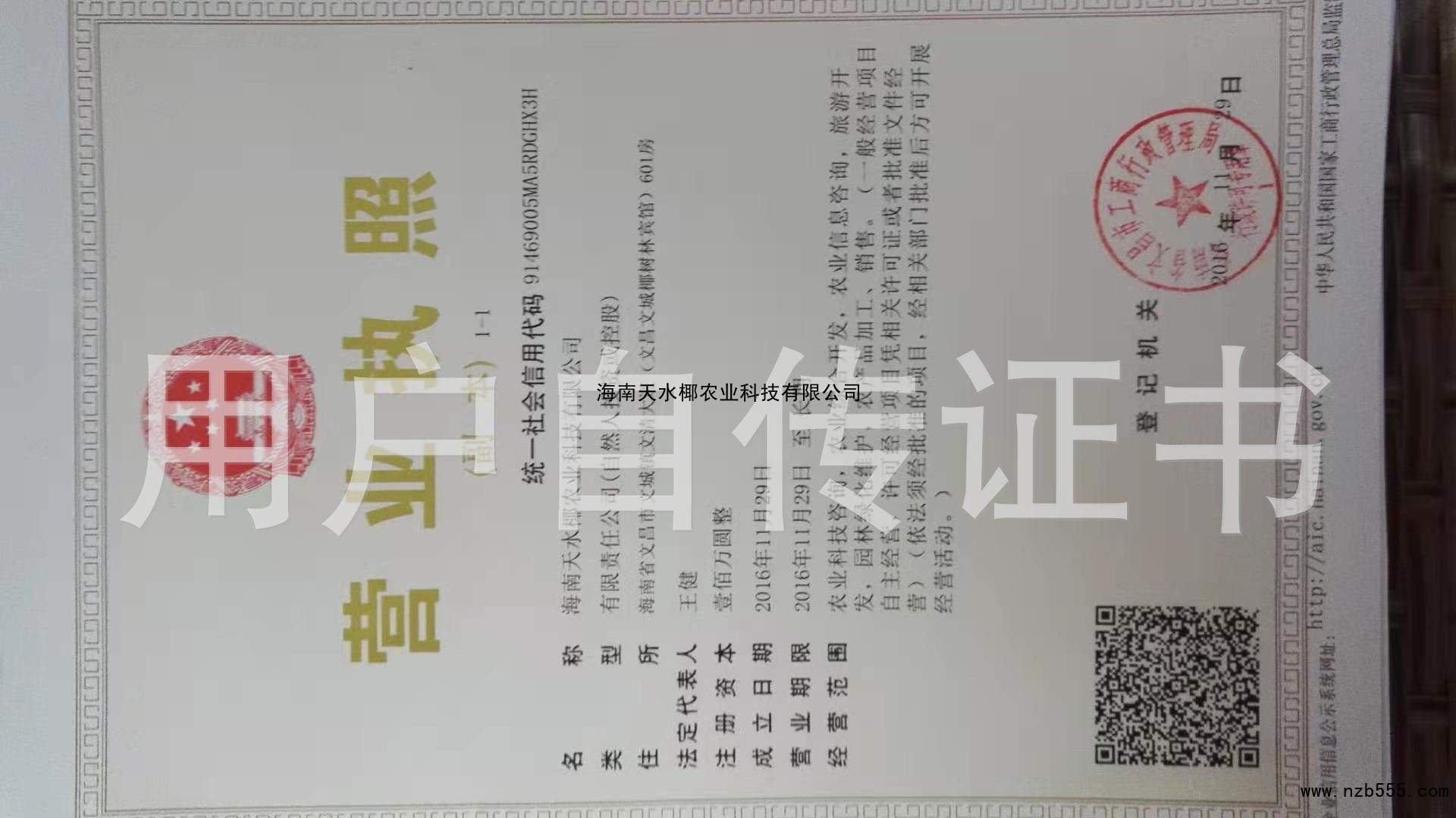 榮譽(yù)資質(zhì) 海南天水椰農(nóng)業(yè)科技有限公司