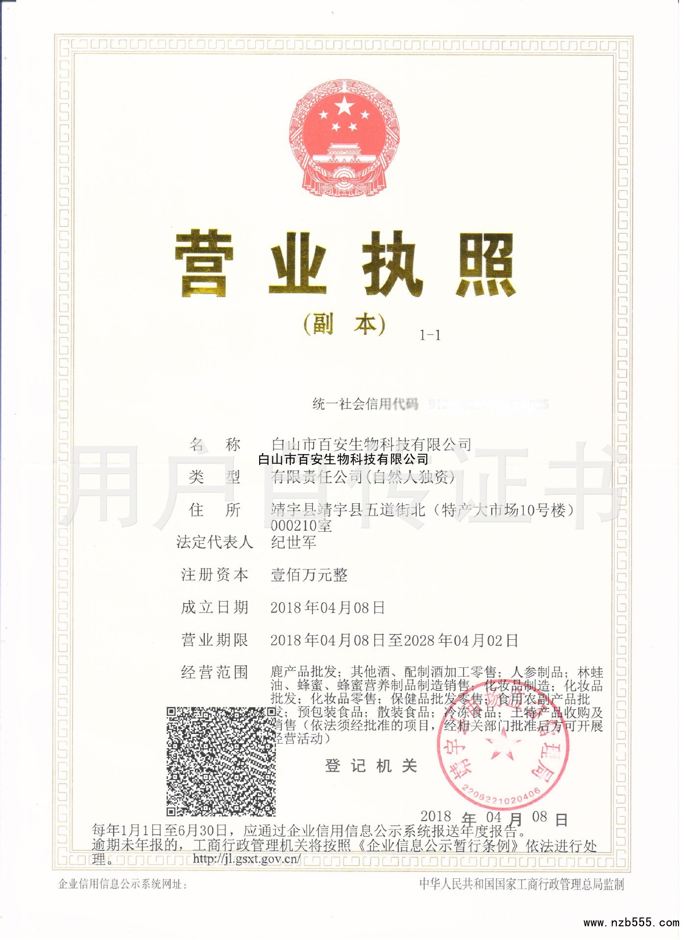 白山市百安生物科技有限公司