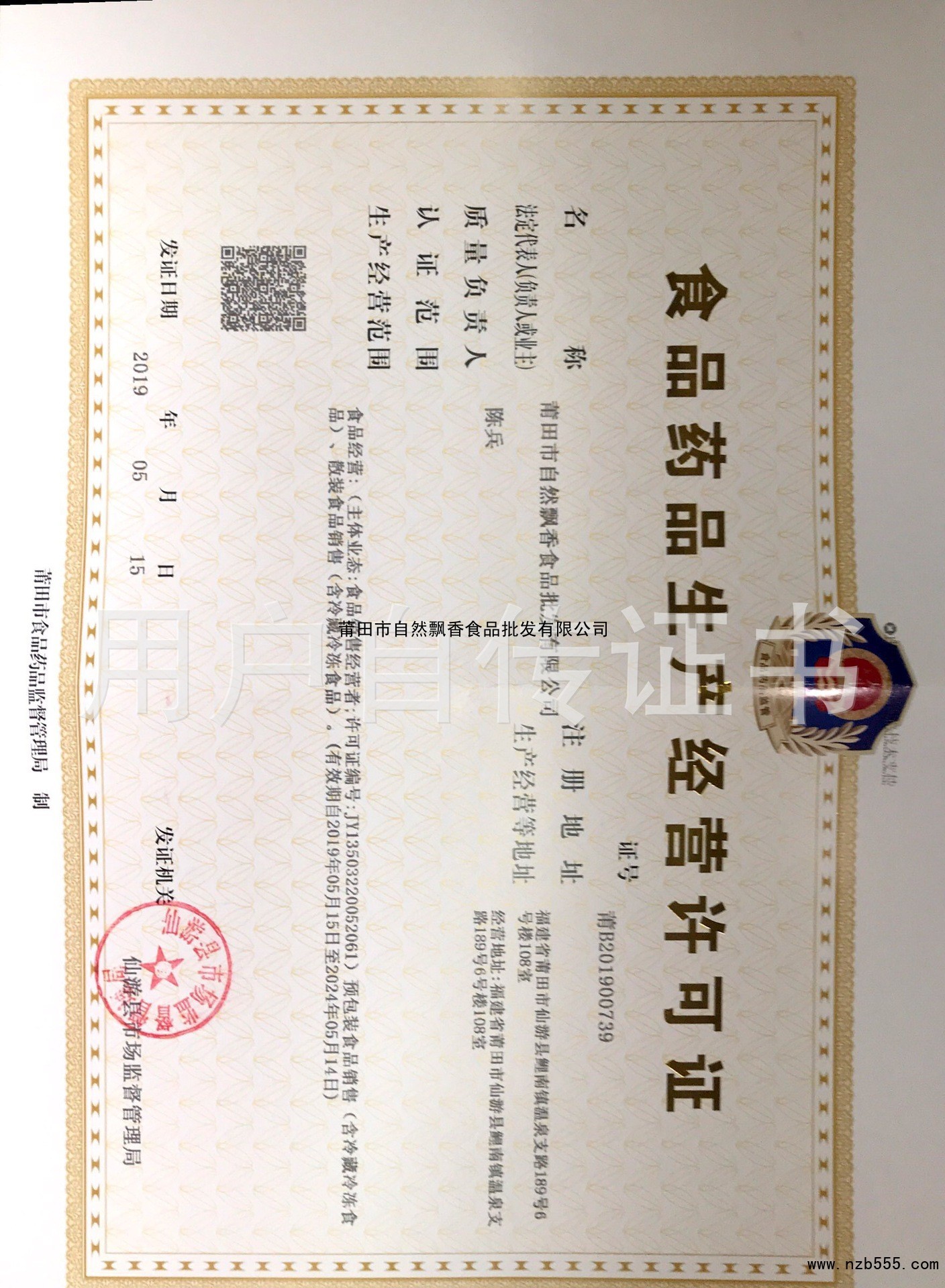 | 發(fā)證機(jī)構(gòu): | 仙游縣市場監(jiān)督管理局 | 發(fā)證時間 : | 2019-05-15 |