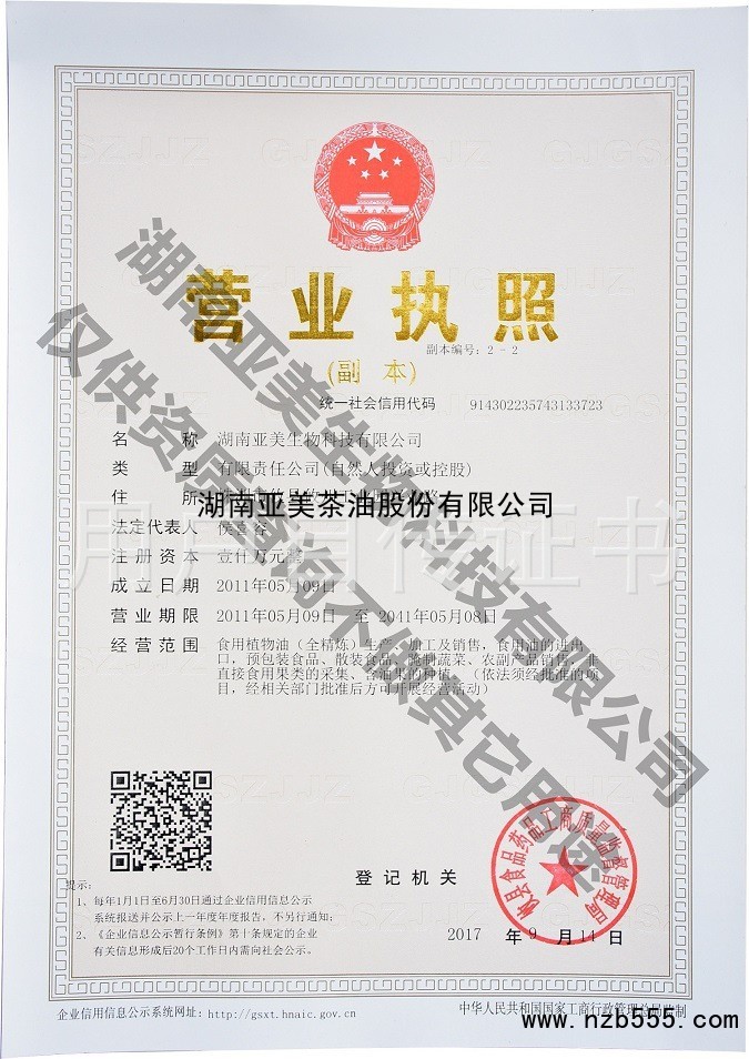 湖南亞美茶油股份有限公司