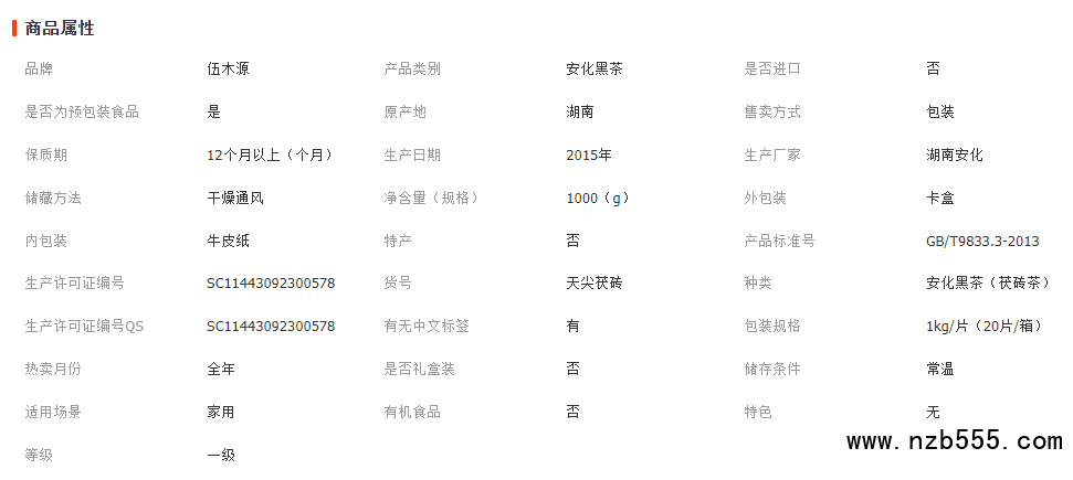 伍木源湖南安化黑茶 金花茯磚茶特產天尖茯磚1kg茶葉 送禮收藏 2片起批