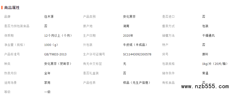 伍木源湖南安化黑茶 金花茯磚茶特產 原葉茯磚茶1kg茶葉
