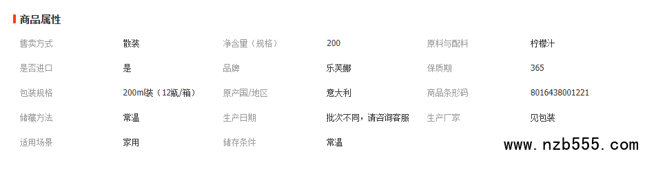 樂芙娜西西里黃檸檬汁 濃縮原汁蛋糕烘焙原料 原裝200ml烘焙原料