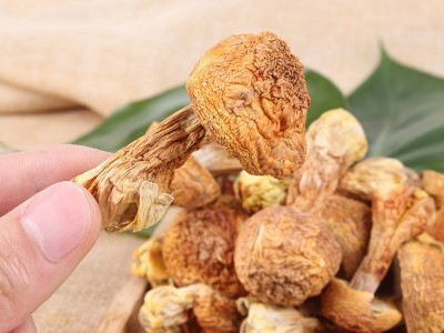 姬松茸(又名巴西蘑菇)子實體粗壯,菌蓋直徑5~11厘米,初為半球形,逐漸成饅頭形直至平展,頂部中間平坦,表面有淡褐色至栗色的纖維狀鱗片,蓋緣有菌幕的碎片。菌蓋中間的菌肉厚達11毫米,邊緣的菌肉薄,菌肉白色,受傷后變微橙黃色。菌褶離生,密集,寬8~10毫米,從白色轉(zhuǎn)肉色,后變?yōu)楹诤稚>鷪A柱狀,中實,長4~14厘米,直徑1~3厘米,上下等粗或基部膨大,表面近白色,手摸后變?yōu)榻S色。菌環(huán)以上初有粉狀至綿屑狀小鱗片,后脫落成平滑,中空。菌環(huán)大,上位,膜質(zhì),初白色,后微褐色,膜下有帶褐色綿屑狀的附屬物。孢子闊橢圓形至卵形,沒有芽孔。