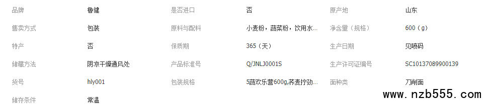 主營: 待煮面條