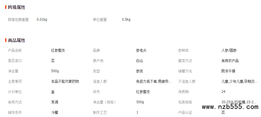 東北長白山干紅參整支根人參可切片高麗參大整支500g
