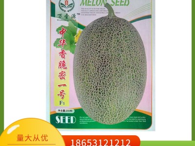 中熟甜瓜雜交一袋種,果實發育期45天左右,果實橢圓,麻綠皮帶墨綠斑點,網紋細密,單瓜重2.5-3公斤,果肉桔紅,肉質細、松、脆、香、超甜、爽口,中心平均折光含糖17-18%,抗白粉病,適合早春和秋季保護地栽培。除西藏外,大部分地區均可種植。