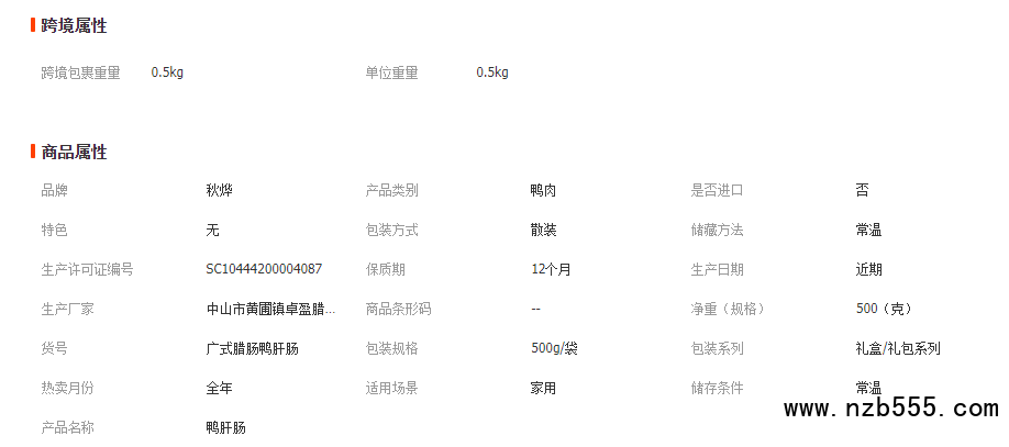秋燁廣味臘腸鴨肝腸禮盒裝 煲仔飯廣式特產臘腸500g鴨肝腸禮品裝