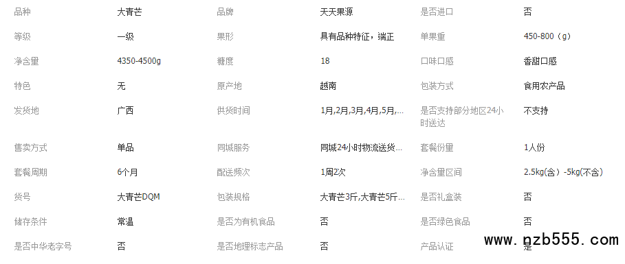 【凈重】:9斤裝(凈重8.7-9斤 約4-7個左右);8斤裝(凈重7.7-8斤 約4-6個左右);大青芒5斤裝(凈重4.7-5斤 約3-4個);大青芒3斤裝(凈重2.7-3斤 約2-3個);由于果子屬于自然生長,每批果園采摘不同,大小個數也會有所差異;整箱個數純屬預算,以實際收到為準!