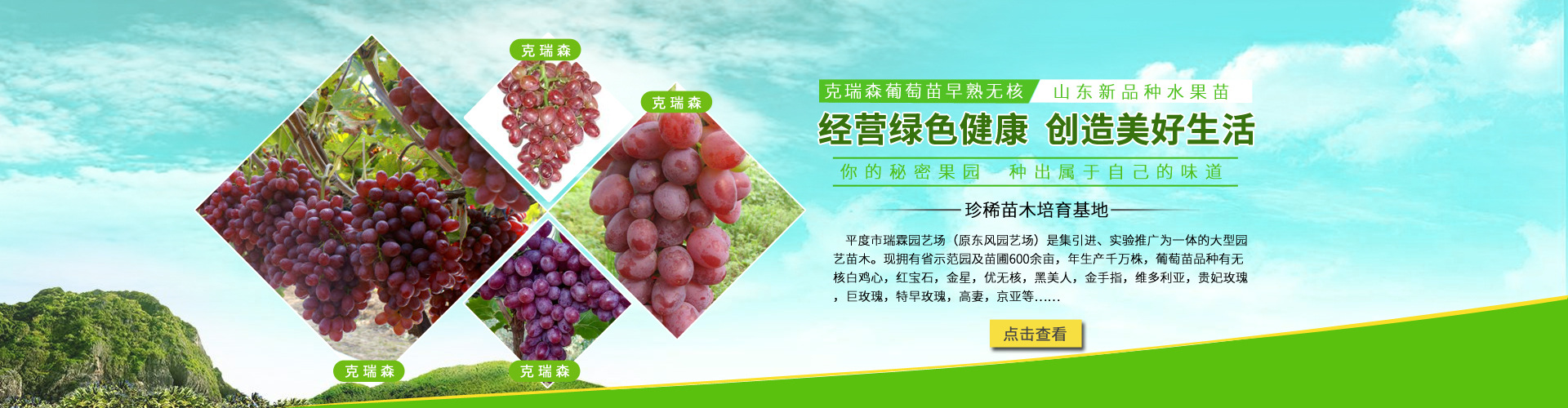 葡萄苗、果樹苗木、綠化苗木種植銷售;經營其他無需行政審批即可經營的一般經營項...