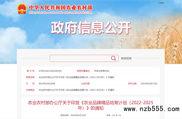 農(nóng)業(yè)品牌精品培育計(jì)劃(2022—2025年)