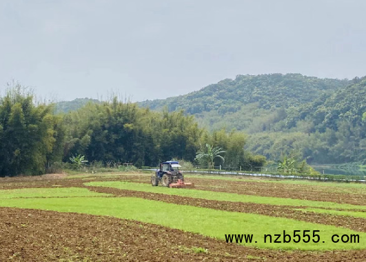 農(nóng)用拖拉機(jī)正在進(jìn)行旋耕作業(yè)。