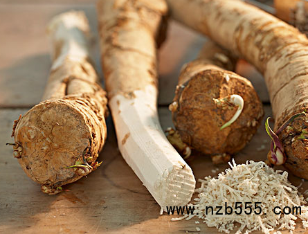 2、辣根主要食用部位是根部(白色),一直作為山葵的替代物而出現,走入尋常百姓家。我們食用的是它的根部,它的辛辣感非常的強烈。