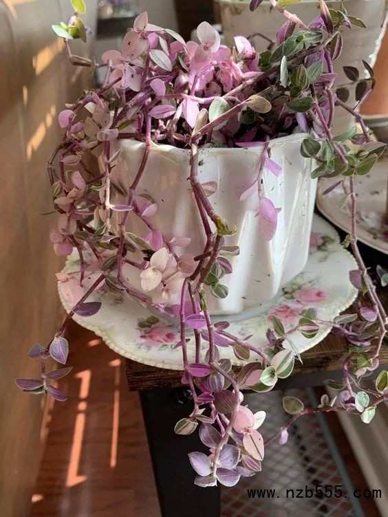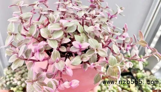 這個是鋪地錦竹草的錦化品種,它和紫露草屬的植物是有較大的親緣關系的,它有時候也會被叫做“胭脂云”,它最大的特點就是,葉子上有粉紅色、奶油色和綠色相間的條紋。