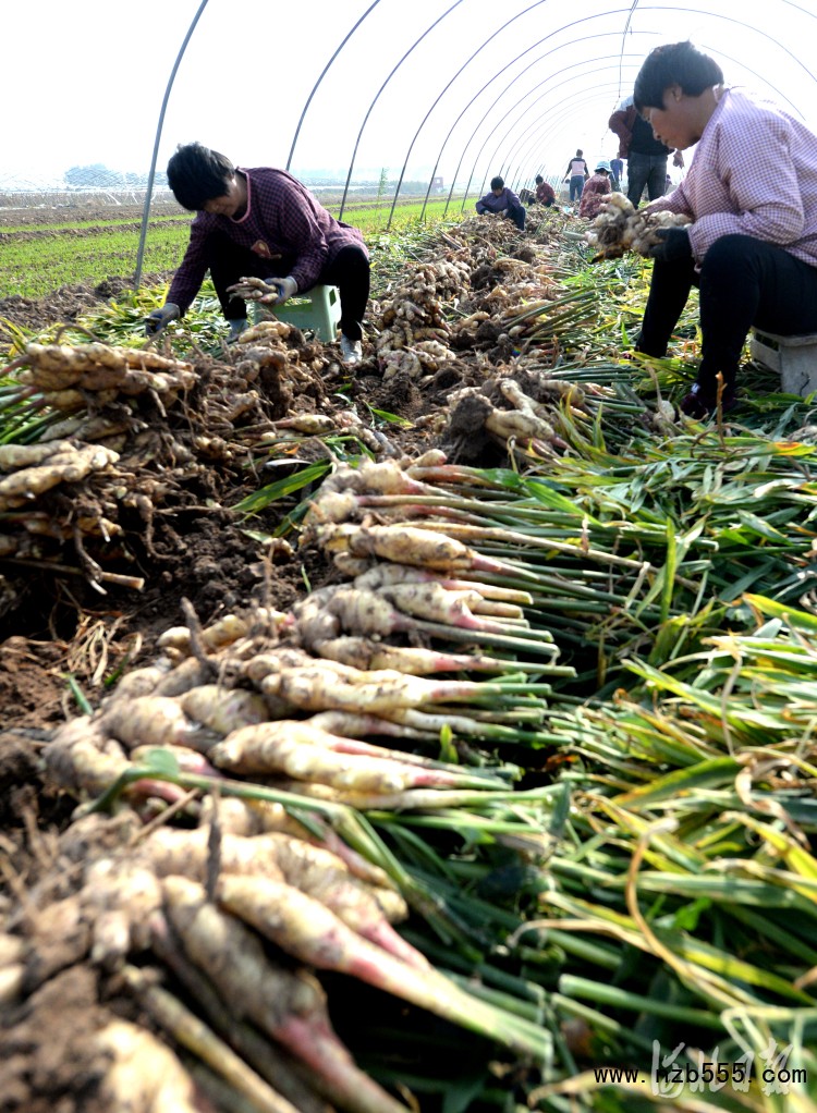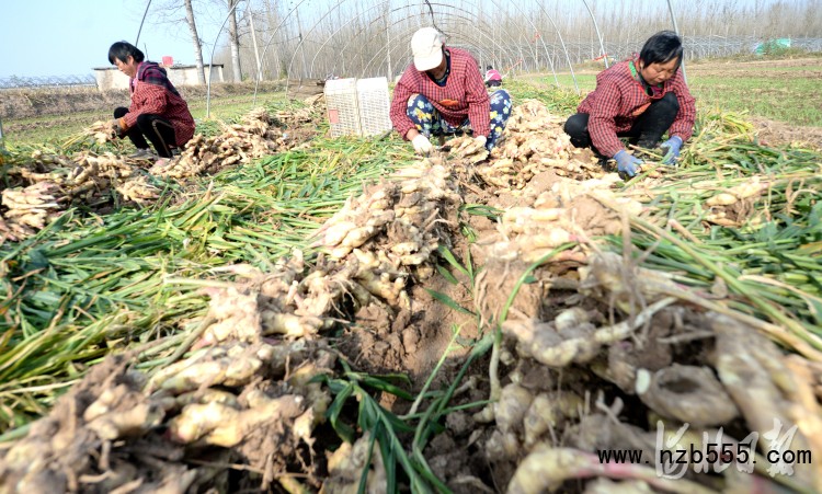 2021年11月4日,河北省磁縣講武城鎮北白道村生姜種植基地內,種植戶在采收生姜。河北省磁縣通過“公司+基地+合作社+農戶”模式,因地制宜發展生姜、山藥、蔬菜等特色種植,促進農業增效和農民增收,助力鄉村振興。河北日報記者杜柏樺攝