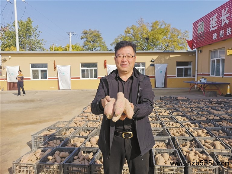 延長縣火焰山紅薯辣椒農民專業合作社理事長馮毅展示紅薯。本報記者 艾永華攝
