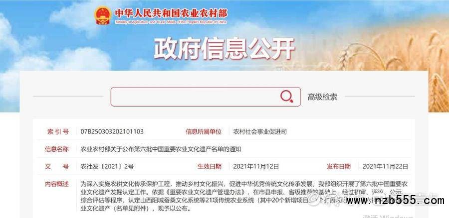 據了解,為深入實施農耕文化傳承保護工程,推動鄉村文化振興,促進中華優秀傳統文化傳承發展,農業農村部組織開展了第六批中國重要農業文化遺產發掘認定工作。依據《重要農業文化遺產管理辦法》,在市縣申報、省級推薦的基礎上,經過初審、評議、公示、綜合評估等程序,認定山西陽城蠶桑文化系統等21項傳統農業系統(其中20個新增項目,1個擴展項目)為第六批中國重要農業文化遺產。