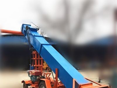 該機采用機動車載形式,使用動力小,通過機械臂前端的螺旋扒谷裝置,將糧食撥到刮板輸送帶上,自動提升到出料口,直接裝車,裝車高度可調節,可完成糧食收場、裝車、堆囤、進出倉等作業,既可應用于糧庫糧站、糧食收儲等工農業單位,又適用于個體散戶創業致富,是一種高自動化程度的收儲機械。