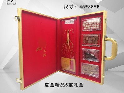 供應(yīng)長(zhǎng)白山山參東北人參靈芝鹿鞭鹿茸五寶禮盒 皮盒