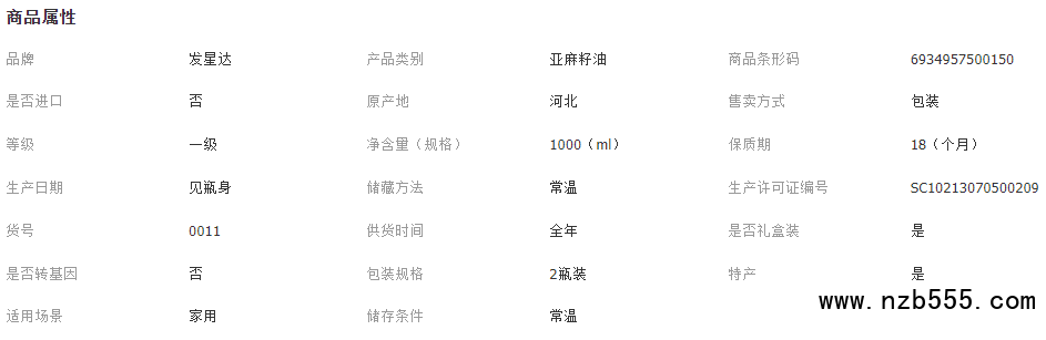 2:產(chǎn)品全部為純正亞麻籽油,規(guī)格有20升、16升、10升、5升、2.5升、1.8升、900毫升、500毫升250毫升100毫升。
