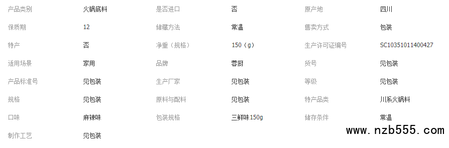 蓉城老媽三鮮味火鍋底料150g四川家用三鮮鍋鴛鴦火鍋不辣清湯配料