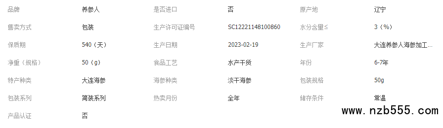 養參人大連純淡干海參