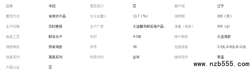 大連淡干海參50g水產