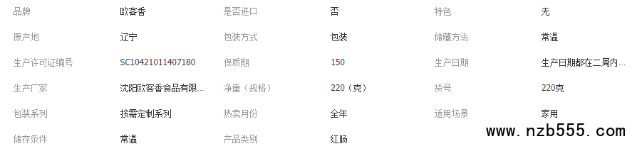 添加劑:谷氨酸鈉,紅曲紅,乳酸鈉,山梨酸鉀,乳酸鏈球菌素 貯藏方法:常溫、避光、通風(fēng)干燥處