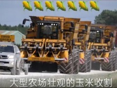 農業機械化大型拖拉機玉米收割機,聯合作業很壯觀看著好過癮